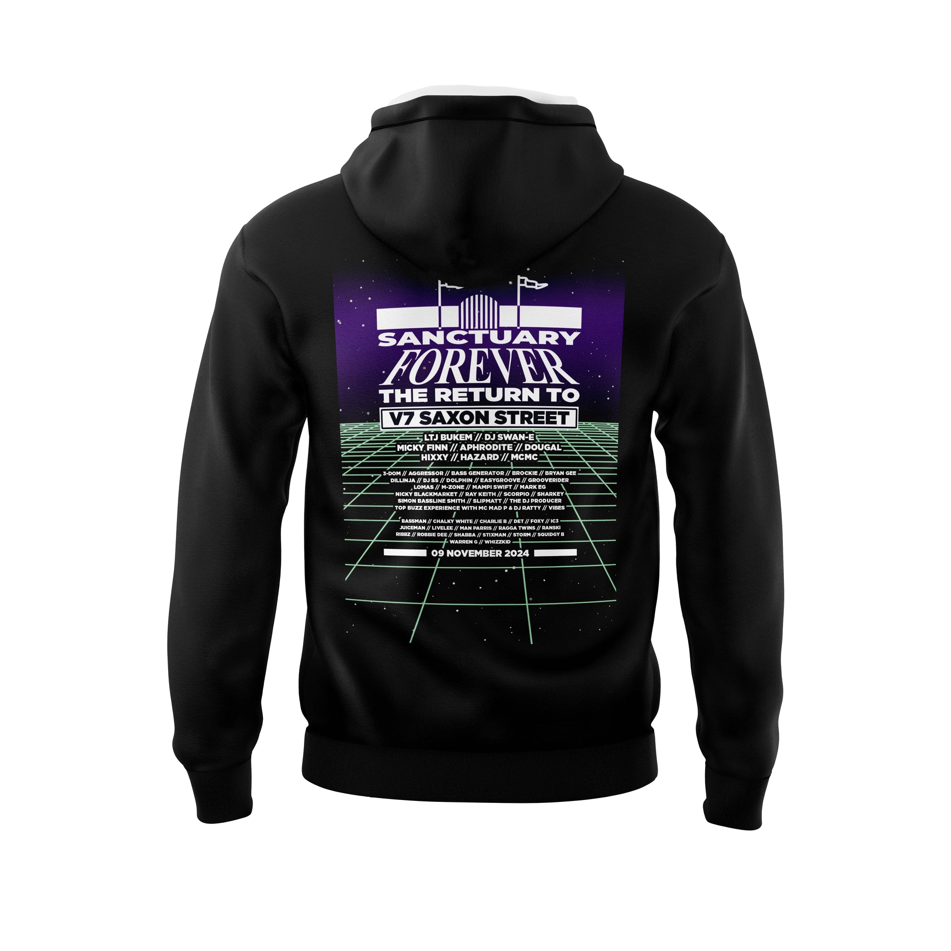 Stay warm while repping the ultimate rave reunion with the Sanctuary Forever PART 2 LINEUP Hoodie. Designed to honour the biggest 90s rave reunion in two decades, this hoodie is perfect for ravers who want to keep the spirit of V7 Saxon Street alive. Crafted from high-quality, soft material, it's both comfortable and durable—ideal for those chilly rave nights or everyday wear. Featuring exclusive designs that embody the raw, underground vibe of the 90s rave scene, the Sanctuary Forever Hoodie is your go-to gear for showing your love for the legendary rave culture, no matter where the music takes you.